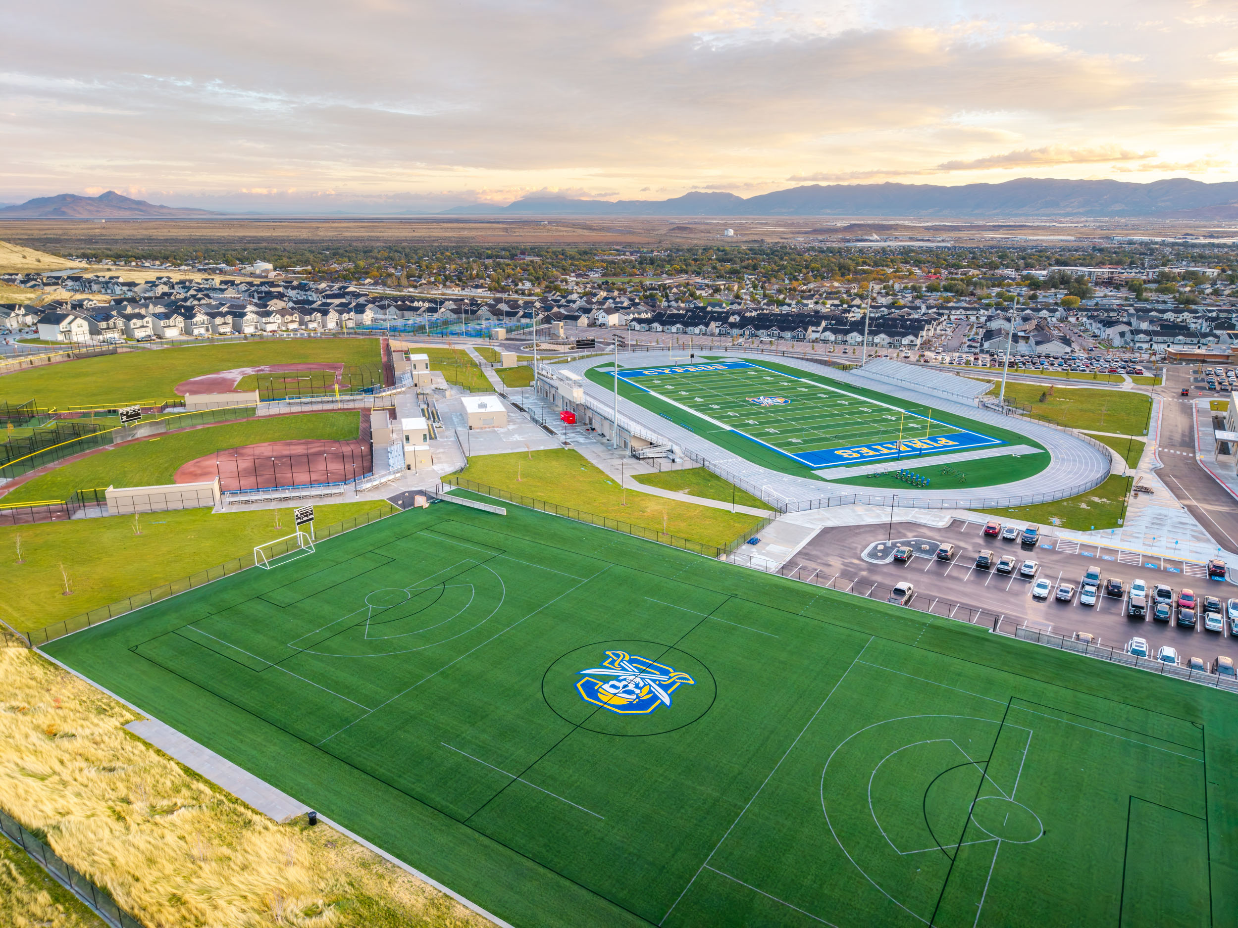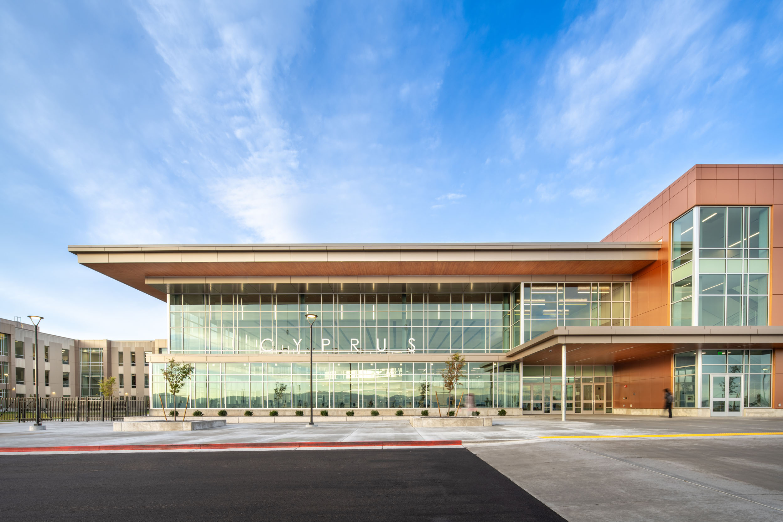 The new Cyprus High School in Magna, Utah, provides a modern, safe, and future-ready campus that inspires learning, fosters collaboration, and reflects the community’s strong spirit. It replaces the original high school—an aging facility, portions of which were more than 100 years old and suffered structural damage during the magnitude-5.7 earthquake in 2020.